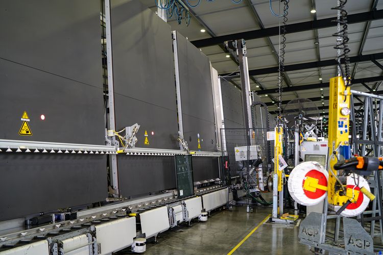 在这三套切割系统后面,分别由 LiSEC KSR+KSV 机器对玻璃的所有四个面进行热封处理。随后对玻璃进行清洗,并扫描检查是否存在缺陷。在检验站,操作员可以检查和解决所有缺陷。若有缺陷无法解决,则重新制作这块玻璃板。分拣系统确保周期时间较短,其收集输送至淬火机的玻璃板,又将未经淬火处理的玻璃板转运出去。收集的玻璃板被垂直输送到淬火机。在这里,操作员将玻璃板放置到淬火机床上,加工完毕后,操作员再将玻璃板移除。