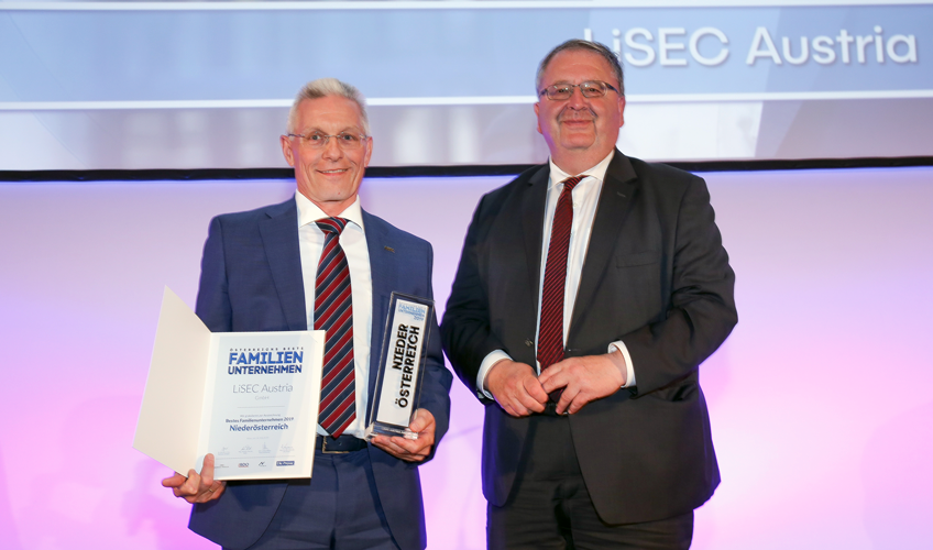 LiSEC gewann erstmalig in ihrer Geschichte den Award für das Bundesland Niederösterreich und ist ein Vorzeigebeispiel für die Geschichte eines Pioniers mit Visionen, der sein Unternehmen aus dem Mostviertel heraus zu einem internationalen Top-Player im Bereich Glasbearbeitungsmaschinen entwickelt hat. Gottfried Brunbauer, CEO der LiSEC Gruppe, der den Award von ÖNK-Präsident Ludwig Bittner in Empfang nahm: „Auch wenn LiSEC von einem externem Management-Duo geleitet wird, ist die DNA von LiSEC die eines Familienunternehmens und wir führen das Unternehmen im Sinne des Gründers weiter. Ich freue mich sehr über diese Auszeichnung, die die Leistung und den Beitrag jedes einzelnen Mitarbeiters in der LiSEC Gruppe würdigt.“