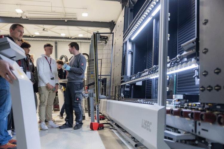 Außerdem bestand wieder die Möglichkeit live zuzusehen, wie ein Isolierglaselement gefertigt wird. An dieser Station erhielten die Schüler:innen Informationen über den Aufbau eines Isolierglases und weitere Auskünfte über die LiSEC Maschinen.