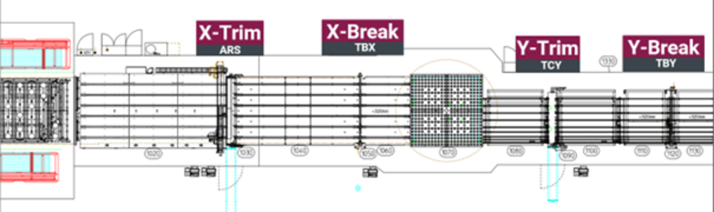 The LiSEC float glass breakout system automatically breaks the trim cut at the front, the remnants at the trailing edge, as well as the X sub-plates continuously, quickly and with consistently high breaking edge quality. Thanks to the optionally available electric design of the breaker heads, individual process parameters are possible for each glass type and thickness to deliver even better breakage results for optimum precision and grind additions! Any Y and Z breakages, as well as W breakages and shapes are broken out on a downstream manual breakout table.